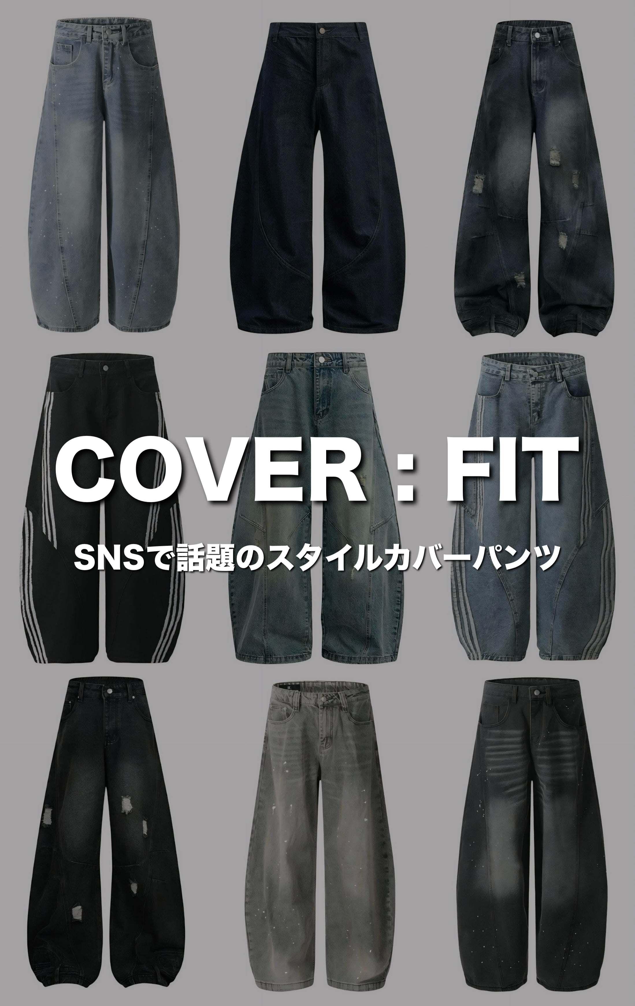 『レビュー高評価💬』【COVER:FIT】Vintage Wide-Leg Distressed Baggy Denim Pants mry001629